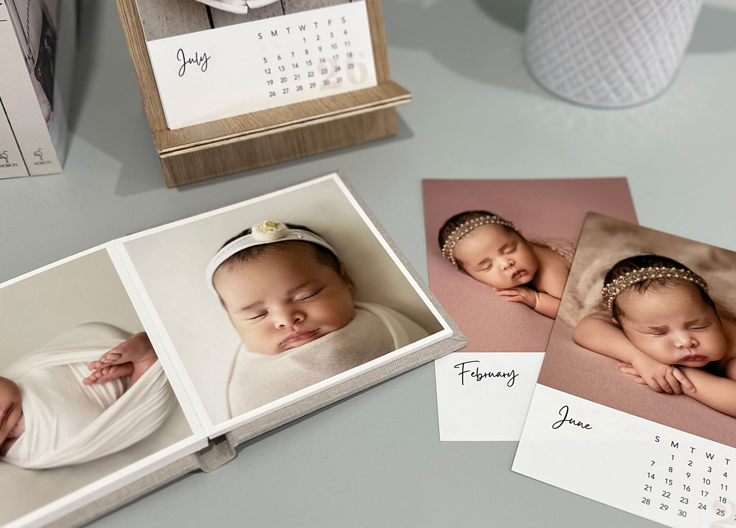 Calendars are not only a thoughtful gift for family and friends – they’re also a beautiful way to keep your business front of mind all year round. Our modern fine art desk calendars are printed on Epson Archival 189gsm smooth matte paper and beautifully presented with a raw timber easel – perfect for any desk or tabletop display. Each calendar sheet measures 7x5", with a 5x5" image, and to make designing a breeze, we include FREE Canva and Photoshop templates. Calendars run from January through December.