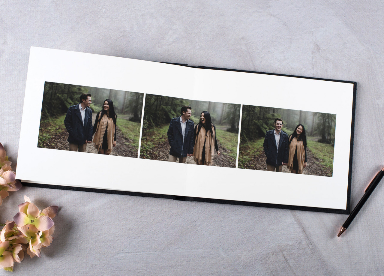 - Layflat album with a large range of beautiful textured cloth or image covers