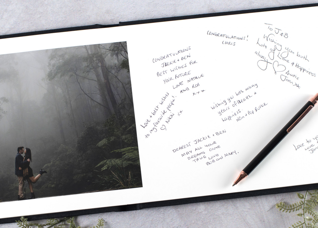 - Personalised album featuring your photos with space for guests to sign