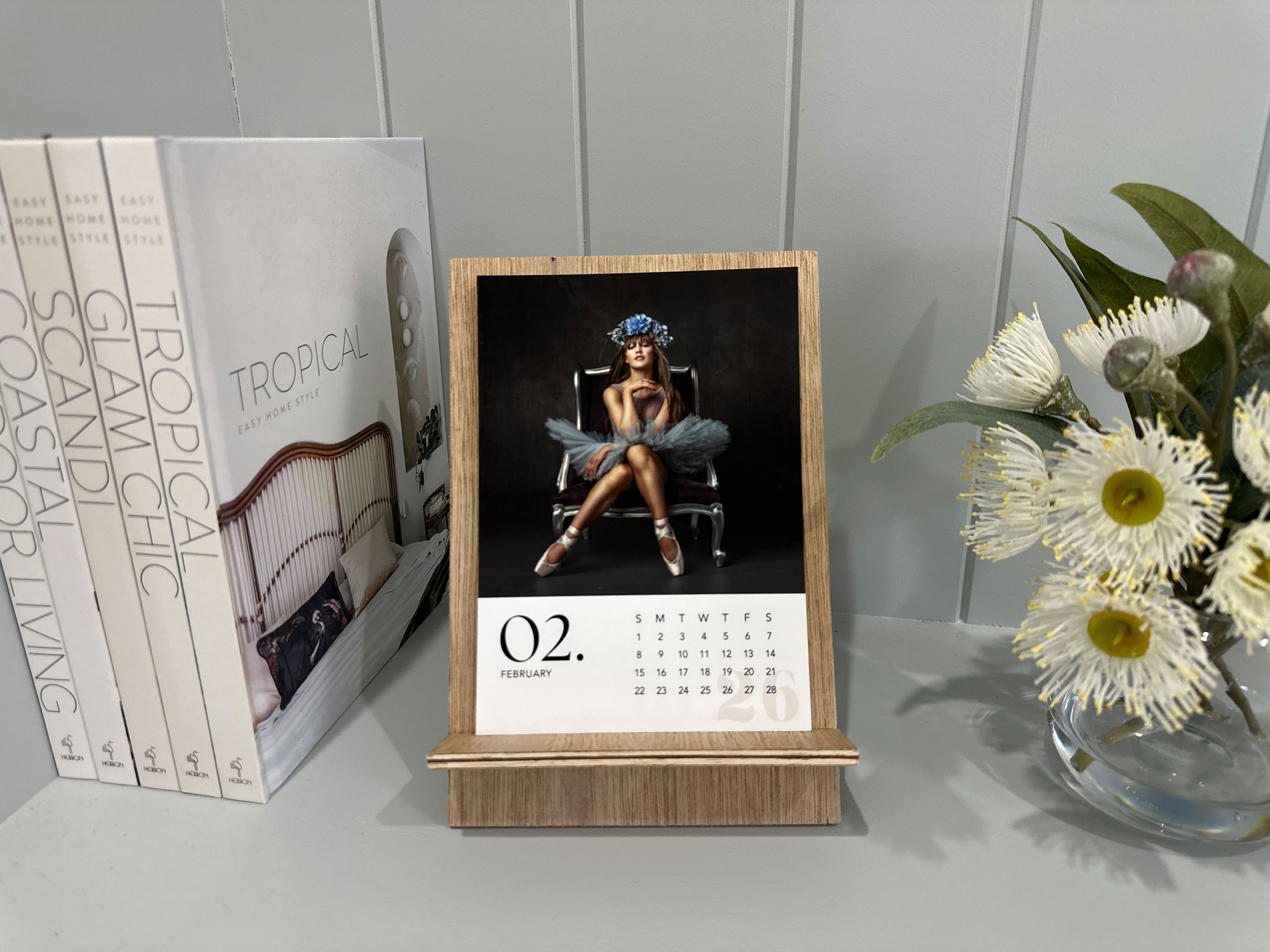 Calendars are not only a thoughtful gift for family and friends – they’re also a beautiful way to keep your business front of mind all year round. Our modern fine art desk calendars are printed on Epson Archival 189gsm smooth matte paper and beautifully presented with a raw timber easel – perfect for any desk or tabletop display. Each calendar sheet measures 7x5", with a 5x5" image, and to make designing a breeze, we include FREE Canva and Photoshop templates. Calendars run from January through December.