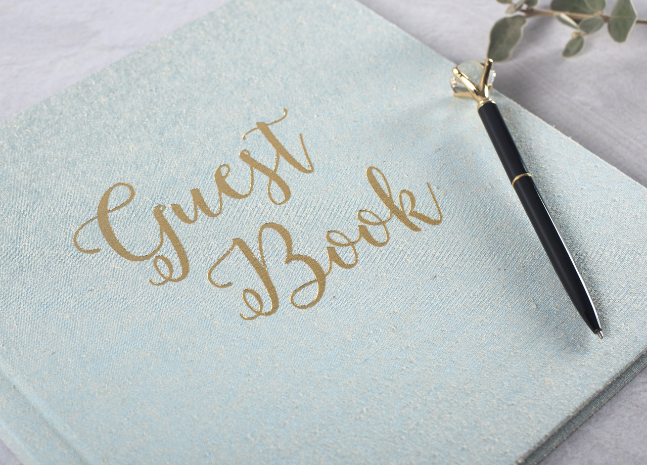 Printed on fine art matte paper and available with your choice of textured cloth covers or a personalised image cover, every Guest Book includes 6 double-page spreads, with the option to add more.