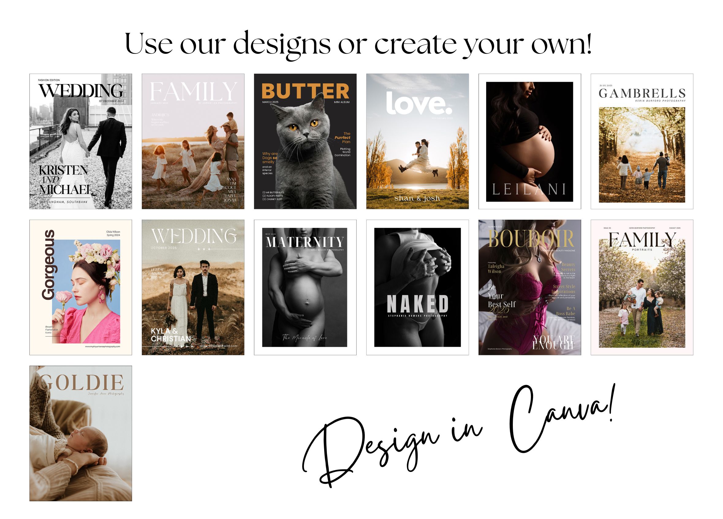 You can design your album and slipcase covers in either Canva or Photoshop - full details can be found under the DESIGN tab on this webpage. Watch our video below to see how you can use our Seldex Cover Designs for free in Canva!